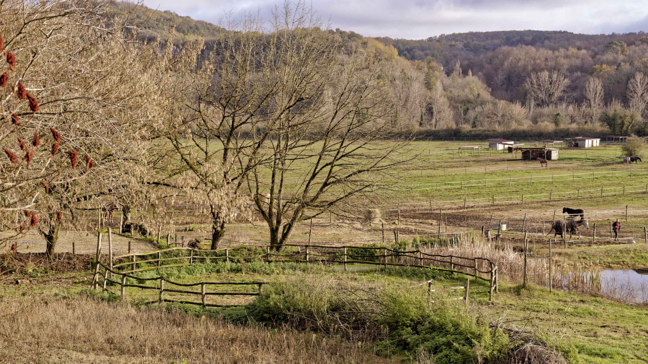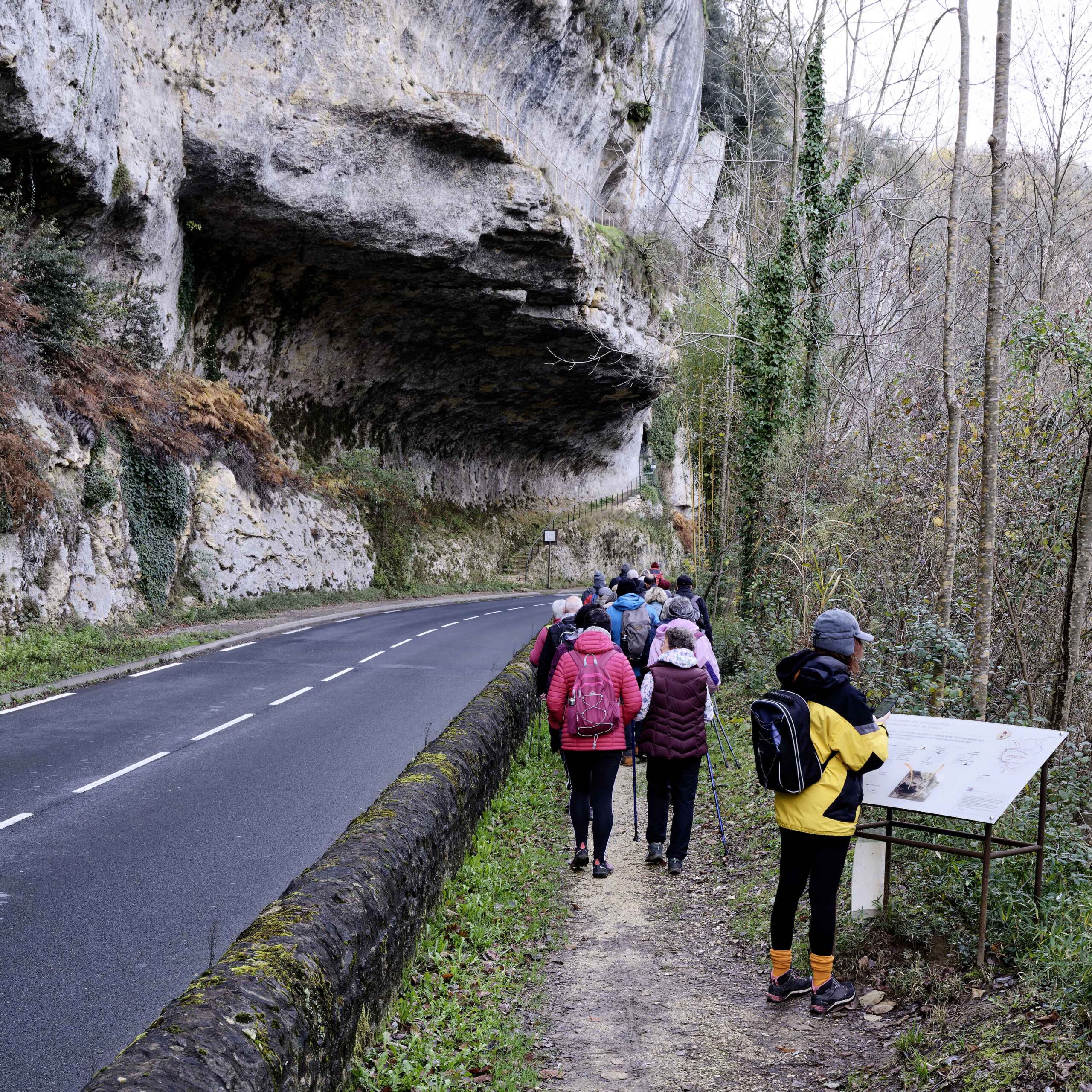 On passe tout près de l’abri du poisson, puis on traverse l’étrange hameau troglodytique du Peuch, on croise un cavalier très jeune mais très fier, on passe par le club hippique Les-Eymaries pour terminer sous les falaises mythiques des Eyzies de Tayac.
