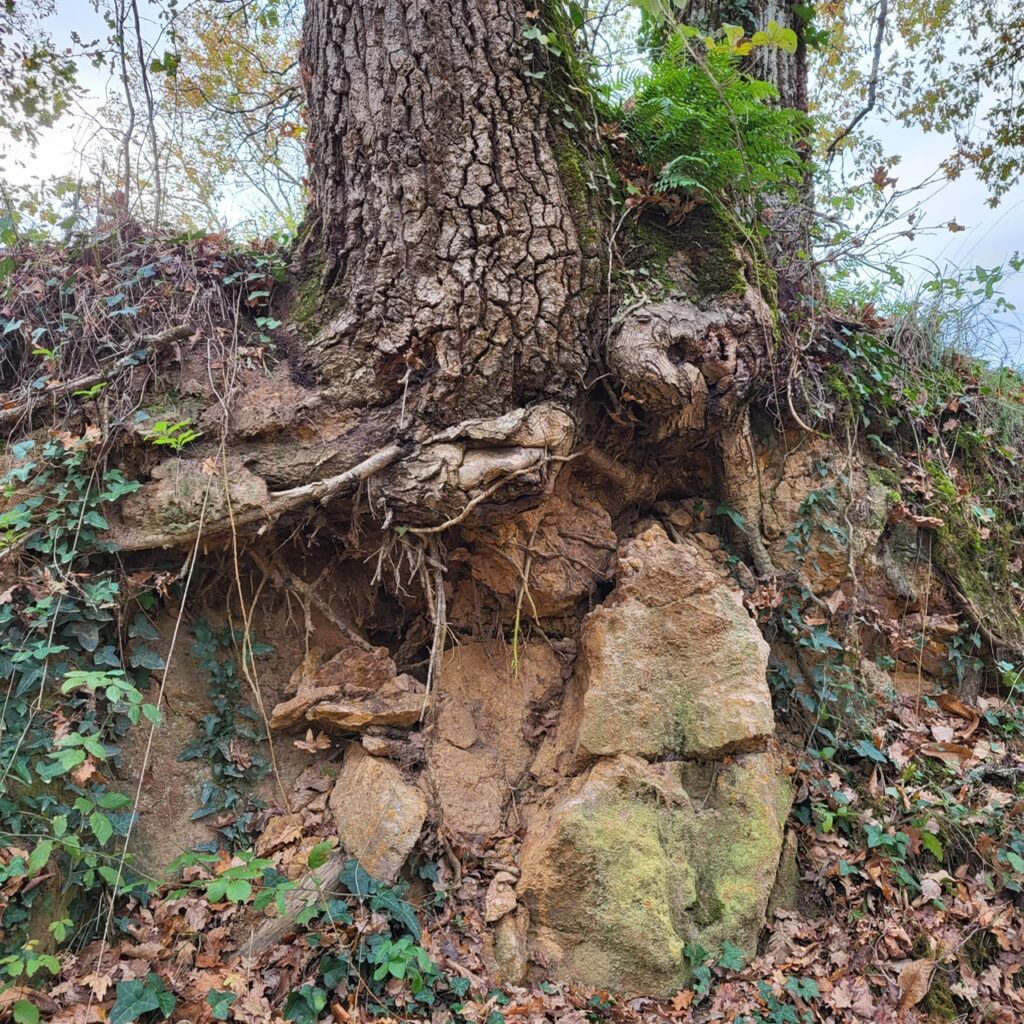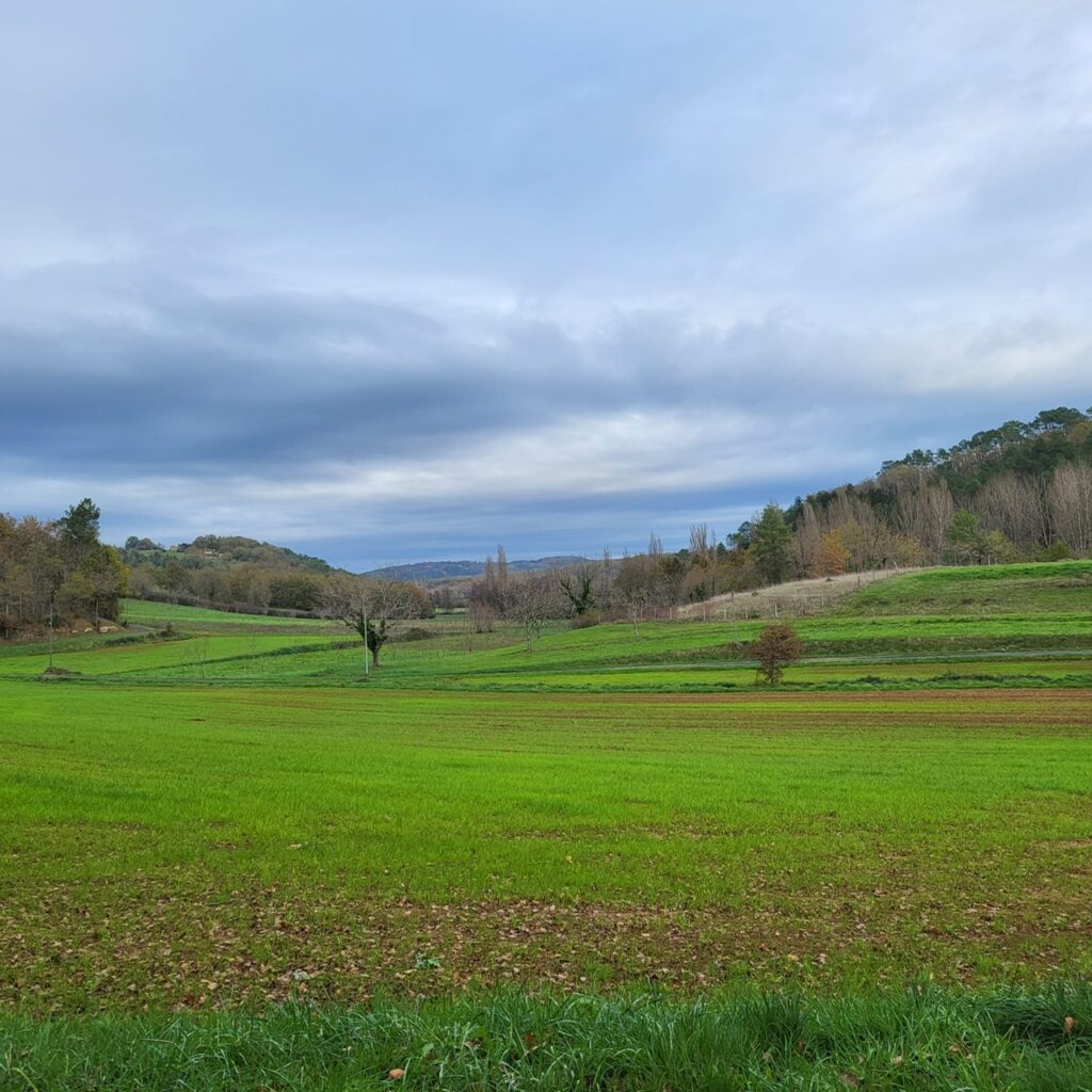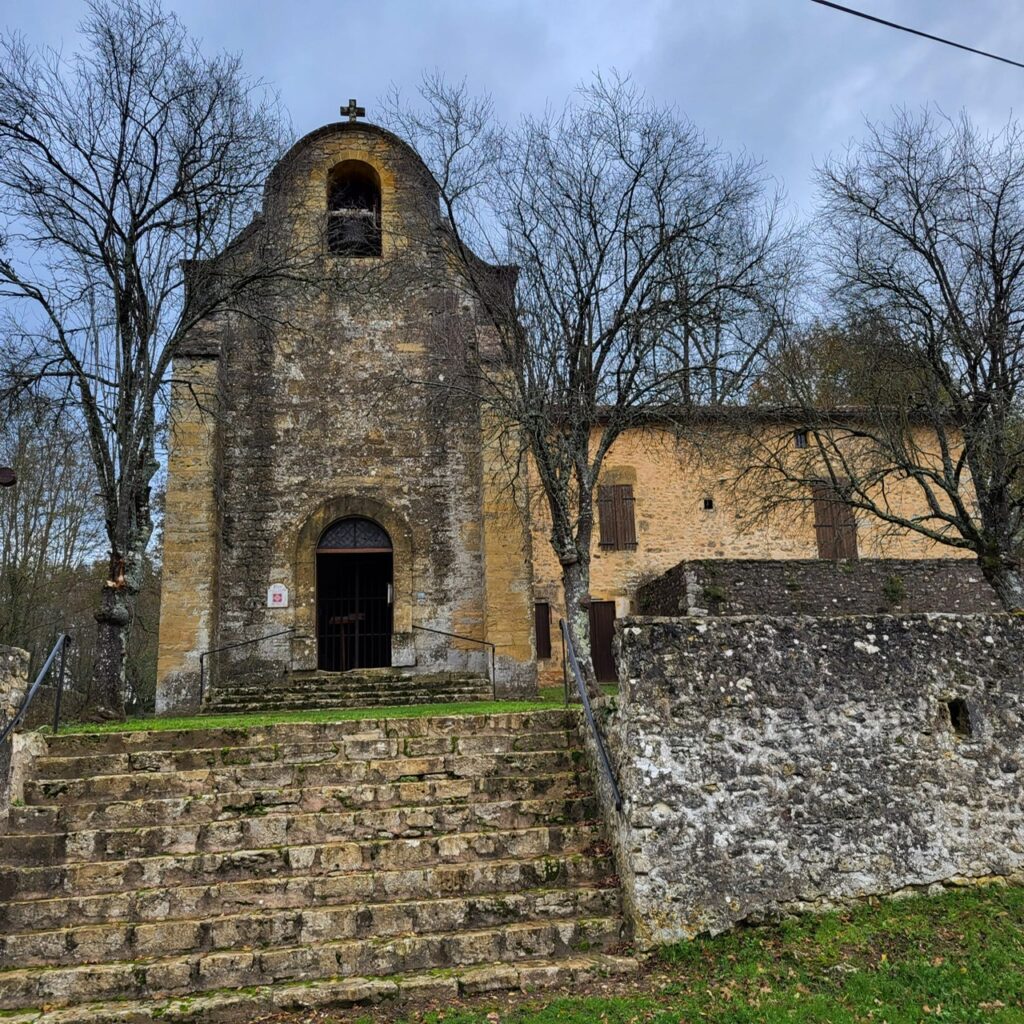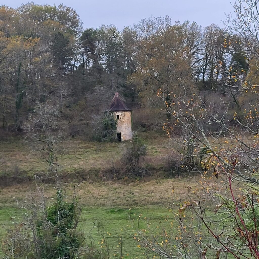 Mais à BPBC nous ne nous laissons pas distraire par l’outre rein, ni même par la pluie qui tombe, ni par le froid qui attend son heure. On s’habille sérieusement, on compte les courageux présents sans trop les reconnaitre sous les capuches, on n’oublie pas la photographe : 18 pour tourner pendant 8 km (boucle de la Pierre), autour du magnifique et vieux village (XIème s.) aux sept clochers. Amadour, lorsqu’il passât par cette forêt de la Bessède parlait aux gens d’un repas auquel il a assisté (cène), d’un visage en sang qu’il a nettoyé (le Christ)… le GR81 (600 km)… la légende.