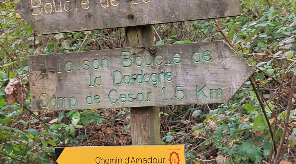 Mais à BPBC nous ne nous laissons pas distraire par l’outre rein, ni même par la pluie qui tombe, ni par le froid qui attend son heure. On s’habille sérieusement, on compte les courageux présents sans trop les reconnaitre sous les capuches, on n’oublie pas la photographe : 18 pour tourner pendant 8 km (boucle de la Pierre), autour du magnifique et vieux village (XIème s.) aux sept clochers. Amadour, lorsqu’il passât par cette forêt de la Bessède parlait aux gens d’un repas auquel il a assisté (cène), d’un visage en sang qu’il a nettoyé (le Christ)… le GR81 (600 km)… la légende.