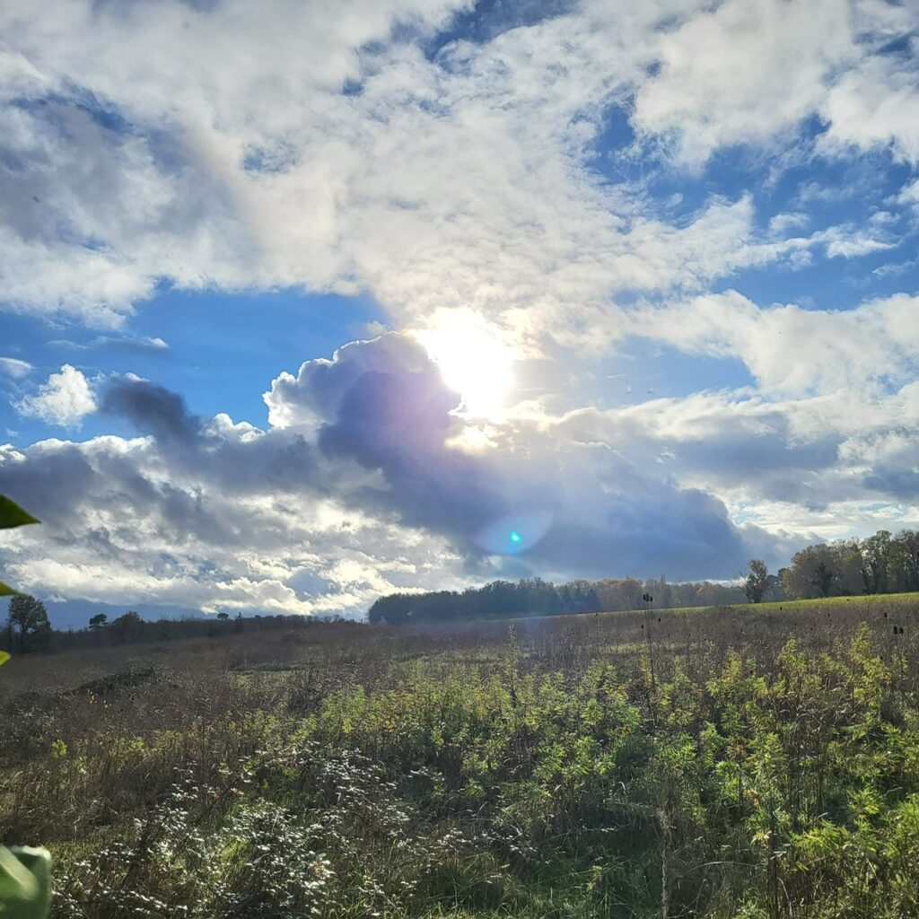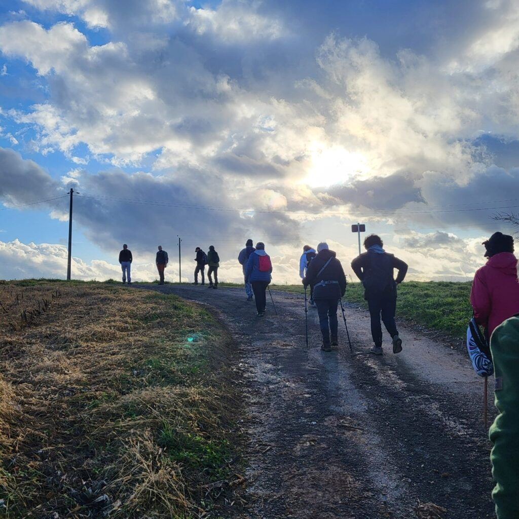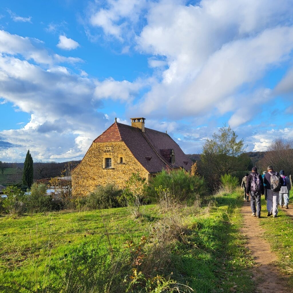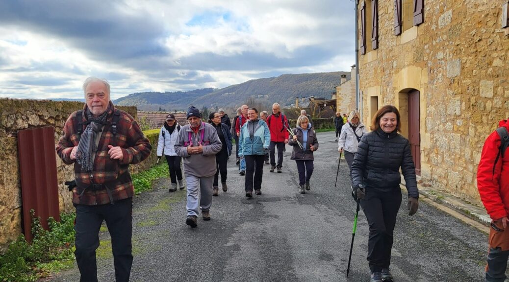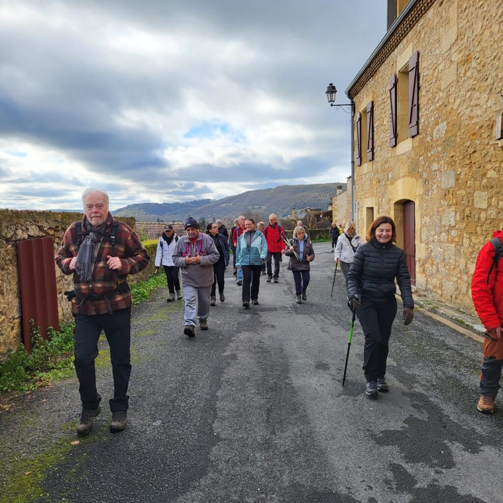 Ils étaient 29 marcheurs pour 11 km. Rando de St Cyprien à Meyrals. Bel éclairage et nuages magnifiques.