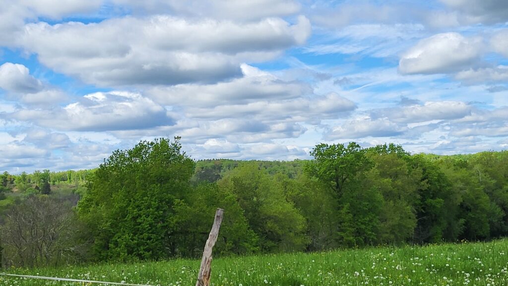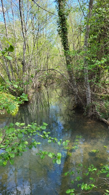 Bucolique ! La pisciculture, une pente raide adorée des châtaigniers, des noyers, une belle maison et une magnifique allée bordée de platanes… et il faisait beau.